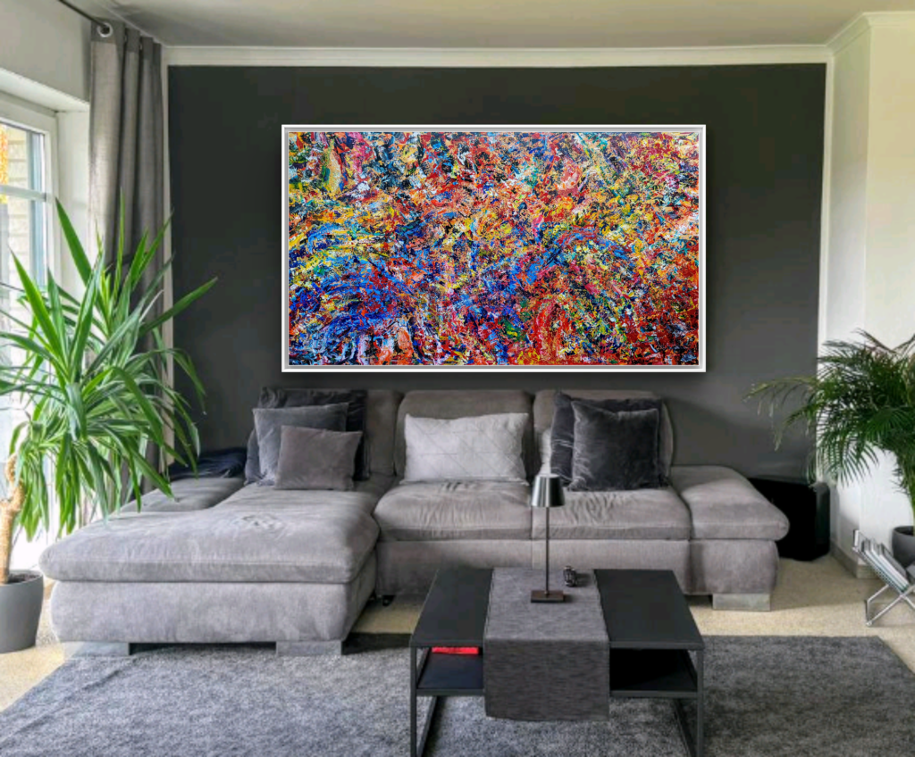 Bis zu einem Format von 240 x 140cm übernehme ich Auftragsarbeiten. In Absprache auch größer. Das Format des Bildes kann in Länge und Breite ihren Wünschen angepasst werden.